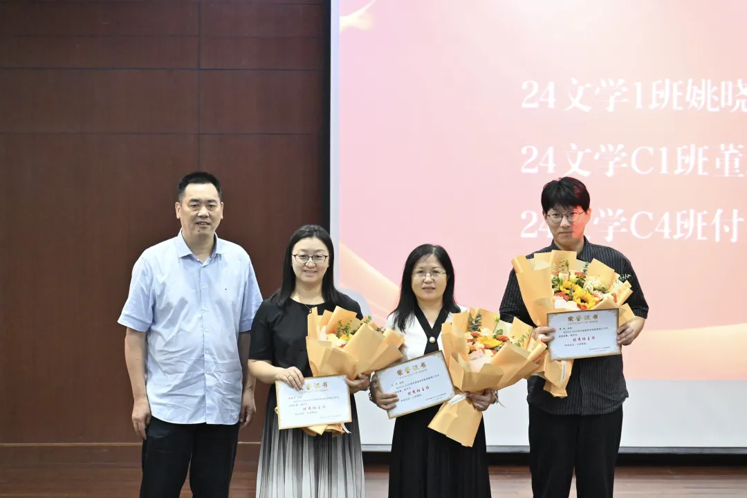 彼美教师,师道尊严。在24级学子的大学旅程中,班主任不仅是传道授业的师长,更是给予温暖陪伴的家人,人文学院资深教授赵顺宏老师为姚晓萍老师、付伊老师、董政老师这3位优秀班主任颁发聘书。受表彰的优秀班主任,他们扎根班级管理,细致关注每一位学生的思想动态与成长需求,用耐心化解困惑,用专业指引方向,在平凡的岗位上默默守护着学生的成长之路。这份荣誉,是对班主任们匠心育人、无私付出的高度认可。未来,我院班主任队伍将继续为学生成长保驾护航,续写育人新篇章。