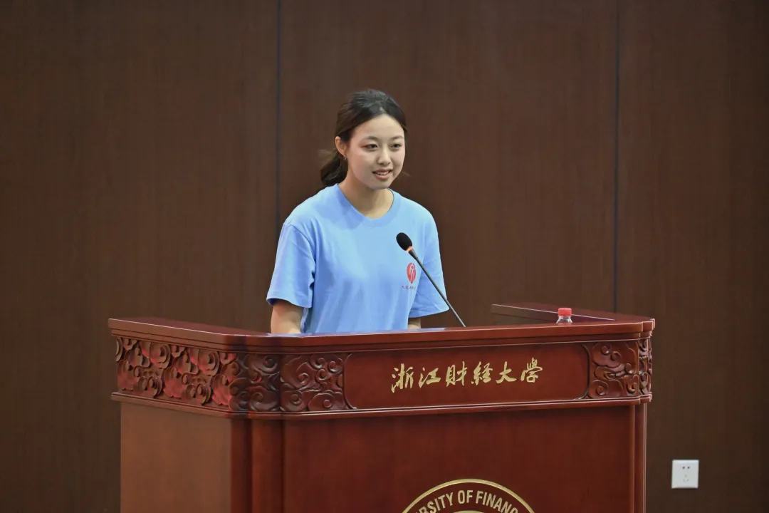 道阻且长,行则将至。新生本科生代表25新传2班的江培悦同学同我们分享了她从高中走向大学的心理路程,并描绘了她对未来的三卷美好蓝图:学习上深耕专业、拓宽视野;生活中以志愿服务践行责任,借社团活动培育兴趣;成长中积累实践经验、坚守本心,立志成为“有温度的传播者”。